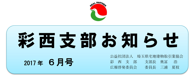 公益社団法人 埼玉県宅地建物取引業協会「彩西支部からのお知らせ」2017年6月号(1)  PDFでもご覧いただけます