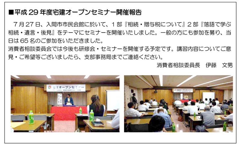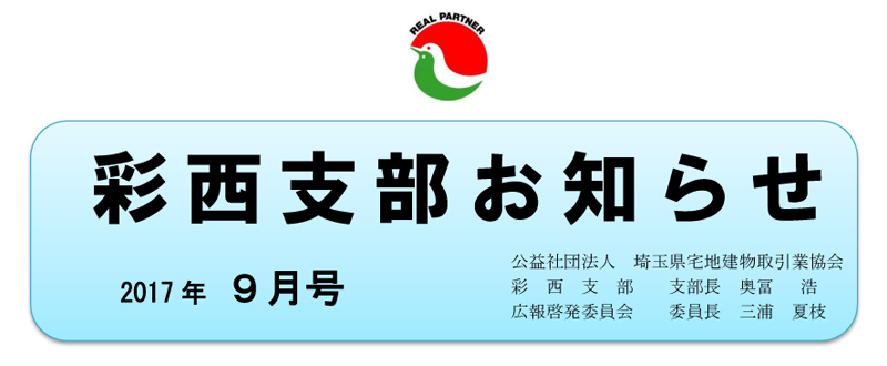 公益社団法人 埼玉県宅地建物取引業協会「彩西支部からのお知らせ」2017年9月号(1)  PDFでもご覧いただけます