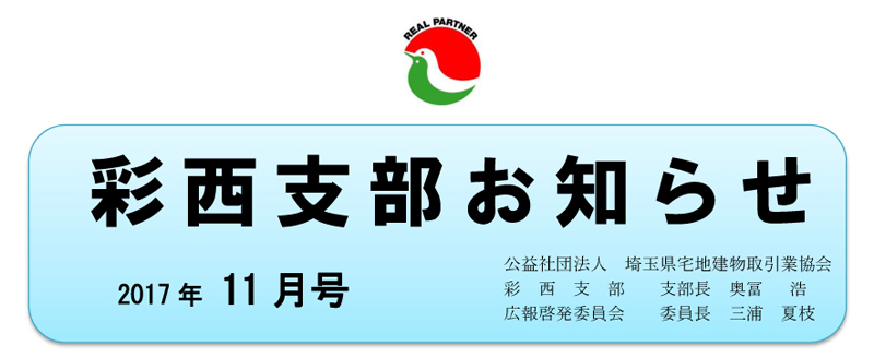 公益社団法人 埼玉県宅地建物取引業協会「彩西支部からのお知らせ」2017年11月号(1)  PDFでもご覧いただけます