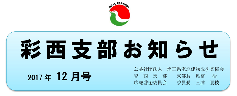 Copyright(C)2017 (公社)埼玉県宅地建物取引業協会彩西支部. All rights reserved.