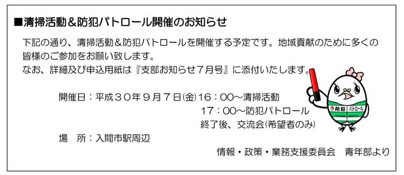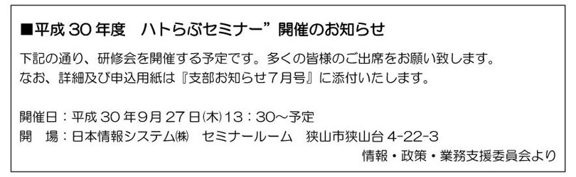 ※ご意見・ご希望等ございましたら 彩西支部事務局(柴田・山下)までご連絡ください。