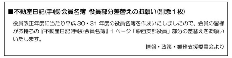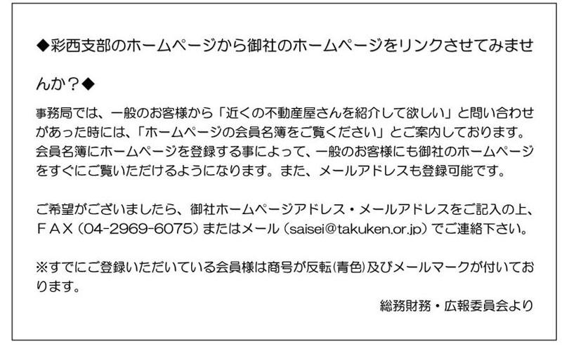Copyright(C)2018 (公社)埼玉県宅地建物取引業協会彩西支部. All rights reserved.