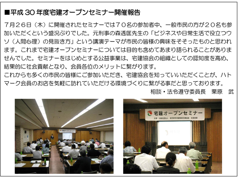 公益社団法人 埼玉県宅地建物取引業協会「彩西支部からのお知らせ」2018年9月号(2)