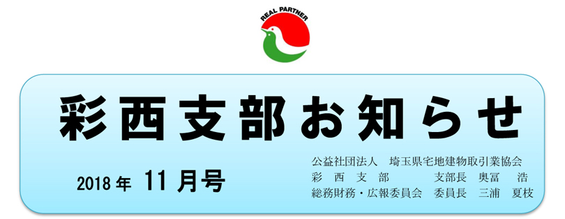 公益社団法人 玉県宅地建物取引業協会「彩西支部からのお知らせ」2018年11月号(1)  PDFでもご覧いただけます