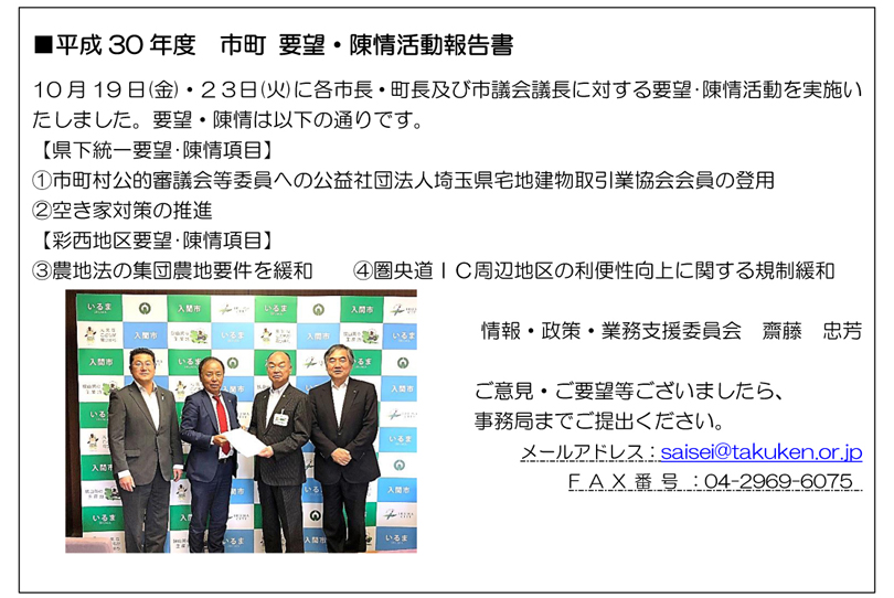 公益社団法人 埼玉県宅地建物取引業協会「彩西支部からのお知らせ」2018年11月号(2)