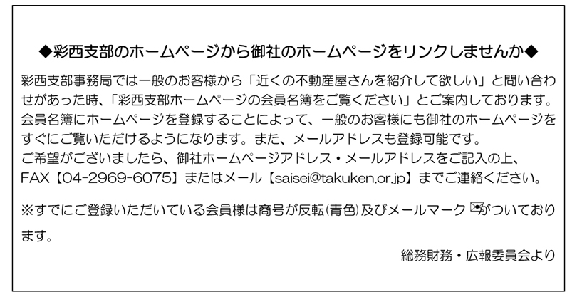 彩西支部お知らせ/公益社団法人 埼玉県宅地建物取引業協会 彩西支部