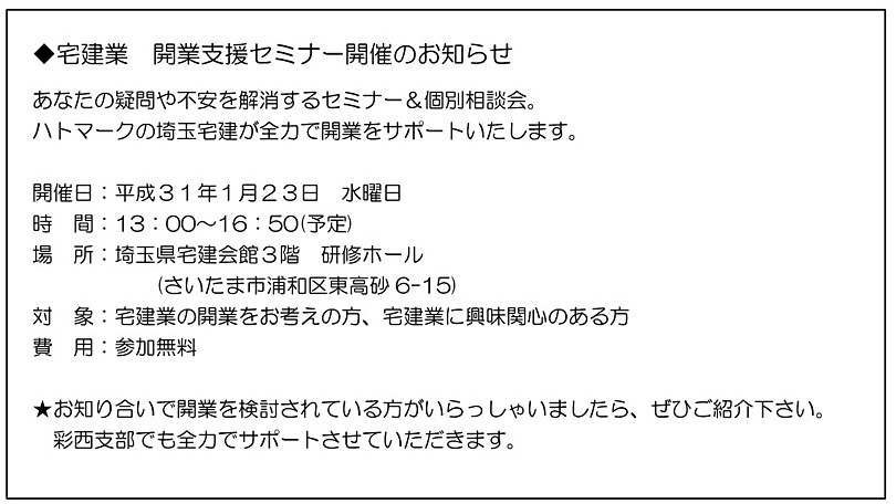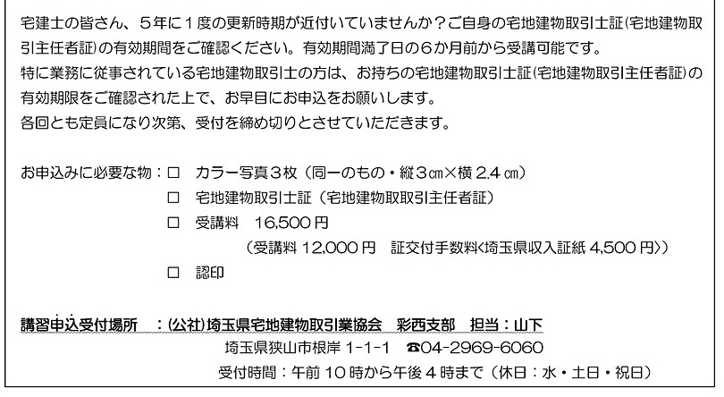 Copyright(C)2018 (公社)埼玉県宅地建物取引業協会彩西支部. All rights reserved.