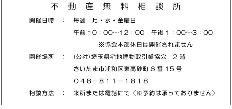 Copyright(C)2019 (公社)埼玉県宅地建物取引業協会彩西支部. All rights reserved.