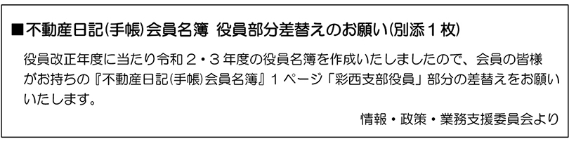 公益社団法人 埼玉県宅地建物取引業協会「彩西支部からのお知らせ」2020年6月号(2)  PDFでもご覧いただけます