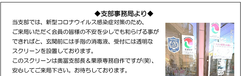 ※ご意見・ご希望等ございましたら 彩西支部事務局(柴田・山下)までご連絡ください。