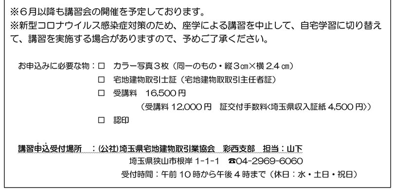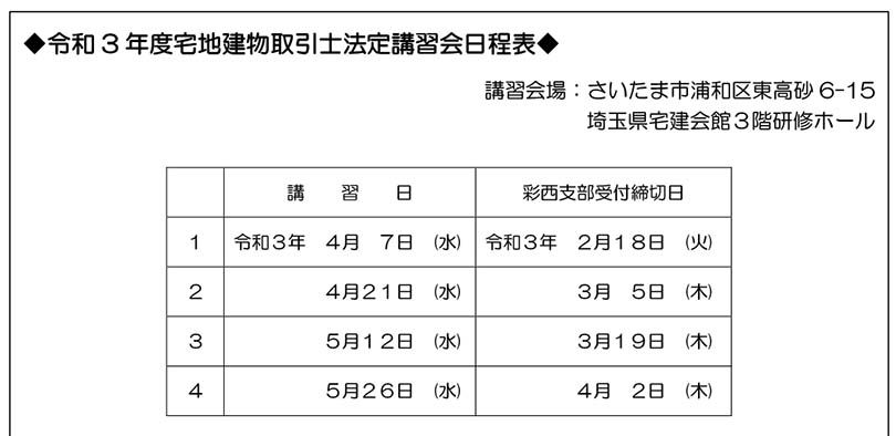 Copyright(C)2020 (公社)埼玉県宅地建物取引業協会彩西支部. All rights reserved.