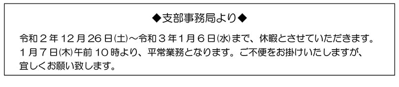 ※ご意見・ご希望等ございましたら 彩西支部事務局(柴田・山下)までご連絡ください。 Tel 04-2969-6060 Fax 04-2969-6075 (受付時間 月・火・木・金曜日 午前10時〜午後4時)