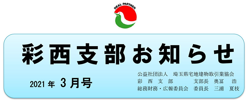 Copyright(C)2021 (公社)埼玉県宅地建物取引業協会彩西支部. All rights reserved.