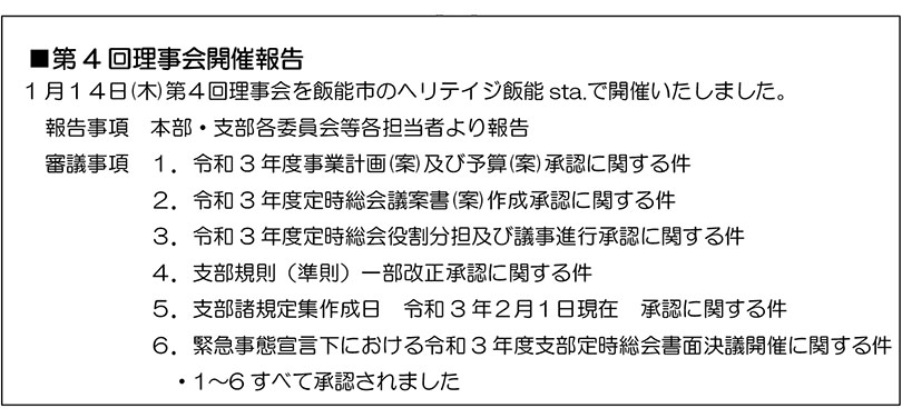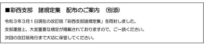 ※ご意見・ご希望等ございましたら 彩西支部事務局(柴田・山下)までご連絡ください。 Tel 04-2969-6060 Fax 04-2969-6075 (受付時間 月・火・木・金曜日 午前10時〜午後4時)