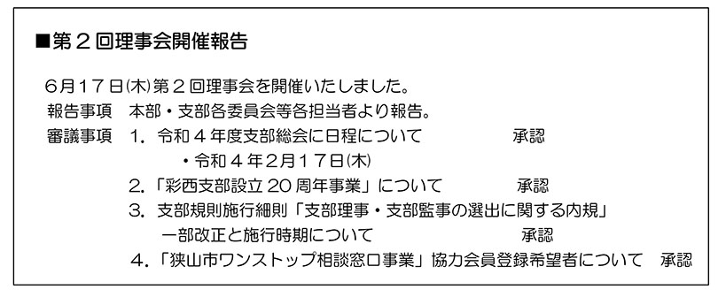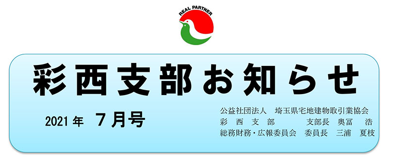 公益社団法人 埼玉県宅地建物取引業協会「彩西支部からのお知らせ」2021年7月号(1) PDFでもご覧いただけます