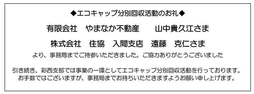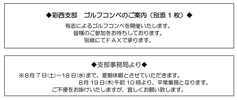 ※ご意見・ご希望等ございましたら 彩西支部事務局(柴田・山下)までご連絡ください。