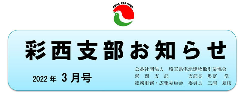 公益社団法人 埼玉県宅地建物取引業協会「彩西支部からのお知らせ」2022年3月号(1) PDFでもご覧いただけます