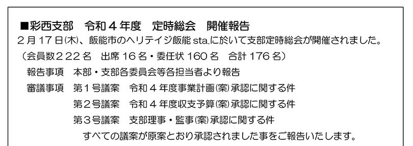 ※ご意見・ご希望等ございましたら 彩西支部事務局(柴田・山下)までご連絡ください。
