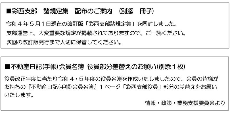 公益社団法人 埼玉県宅地建物取引業協会「彩西支部からのお知らせ」2022年6月号(2)  PDFでもご覧いただけます