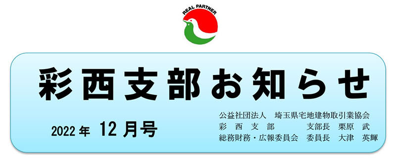 公益社団法人 埼玉県宅地建物取引業協会「彩西支部からのお知らせ」2022年12月号(1) PDFでもご覧いただけます
