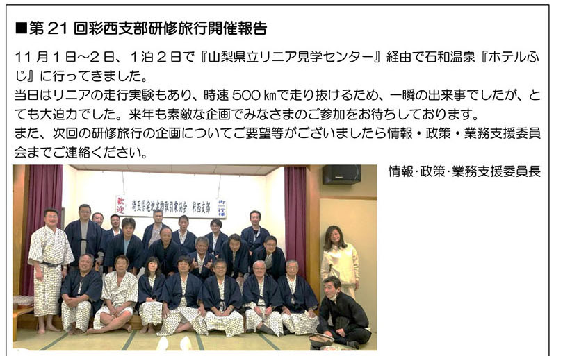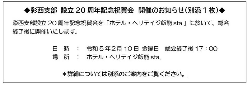 ※ご意見・ご希望等ございましたら 彩西支部事務局(柴田・山下)までご連絡ください。