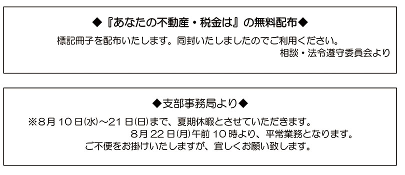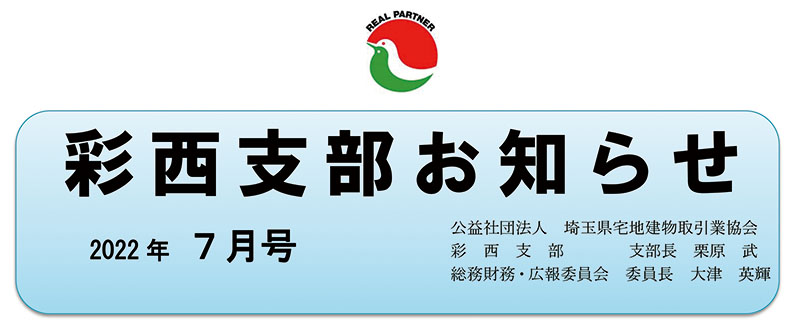 公益社団法人 埼玉県宅地建物取引業協会「彩西支部からのお知らせ」2022年7月号(1) PDFでもご覧いただけます
