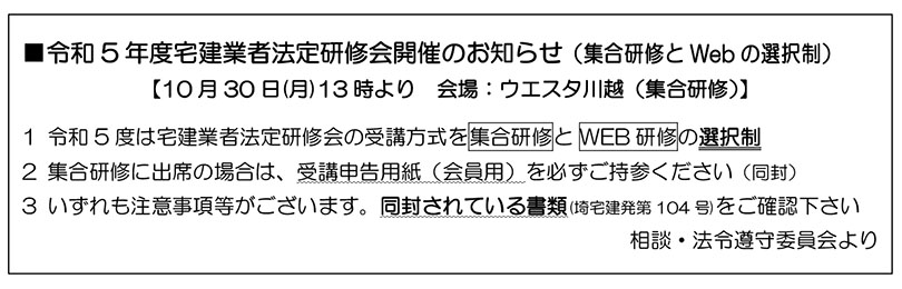 Copyright(C)2023 (公社)埼玉県宅地建物取引業協会彩西支部. All rights reserved.