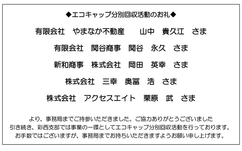 ※ご意見・ご希望等ございましたら 彩西支部事務局(柴田・山下)までご連絡ください。 Tel 04-2969-6060 Fax 04-2969-6075 (受付時間 月・火・木・金曜日 午前10時〜午後4時)