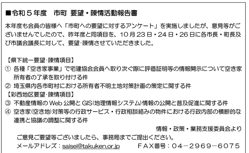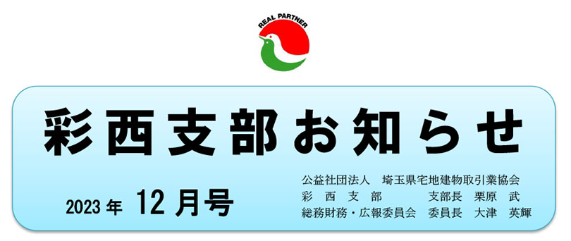 公益社団法人 埼玉県宅地建物取引業協会「彩西支部からのお知らせ」2023年12月号(1) PDFでもご覧いただけます