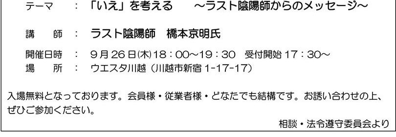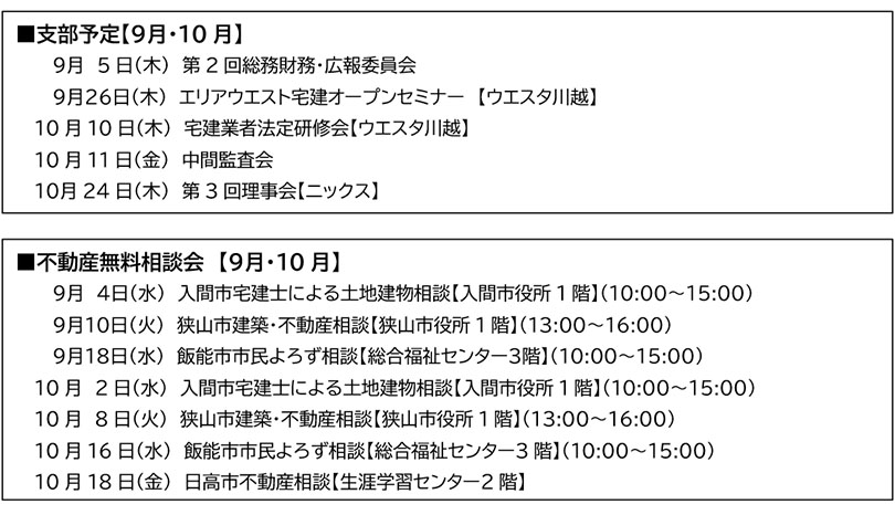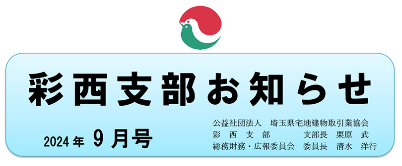 公益社団法人 埼玉県宅地建物取引業協会「彩西支部からのお知らせ」2024年9月号 PDFでもご覧いただけます