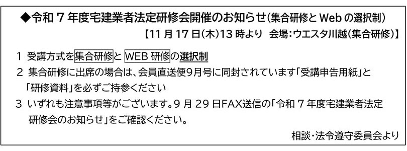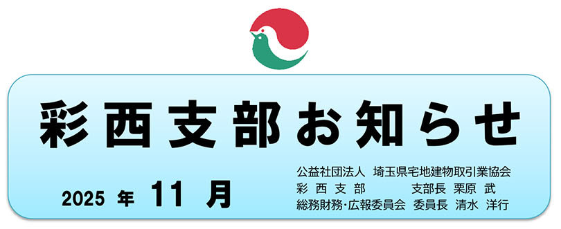 公益社団法人 埼玉県宅地建物取引業協会「彩西支部からのお知らせ」2025年11月号(1) PDFでもご覧いただけます