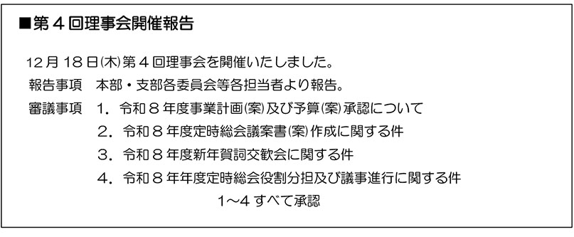 | HOME | ごあいさつ | 支部紹介 | 無料相談会 | 研修会 | 組織・役員 | 会員名簿 | 支部お知らせ | リンク集 |