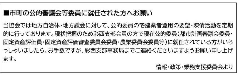 彩西支部お知らせ/公益社団法人 埼玉県宅地建物取引業協会 彩西支部