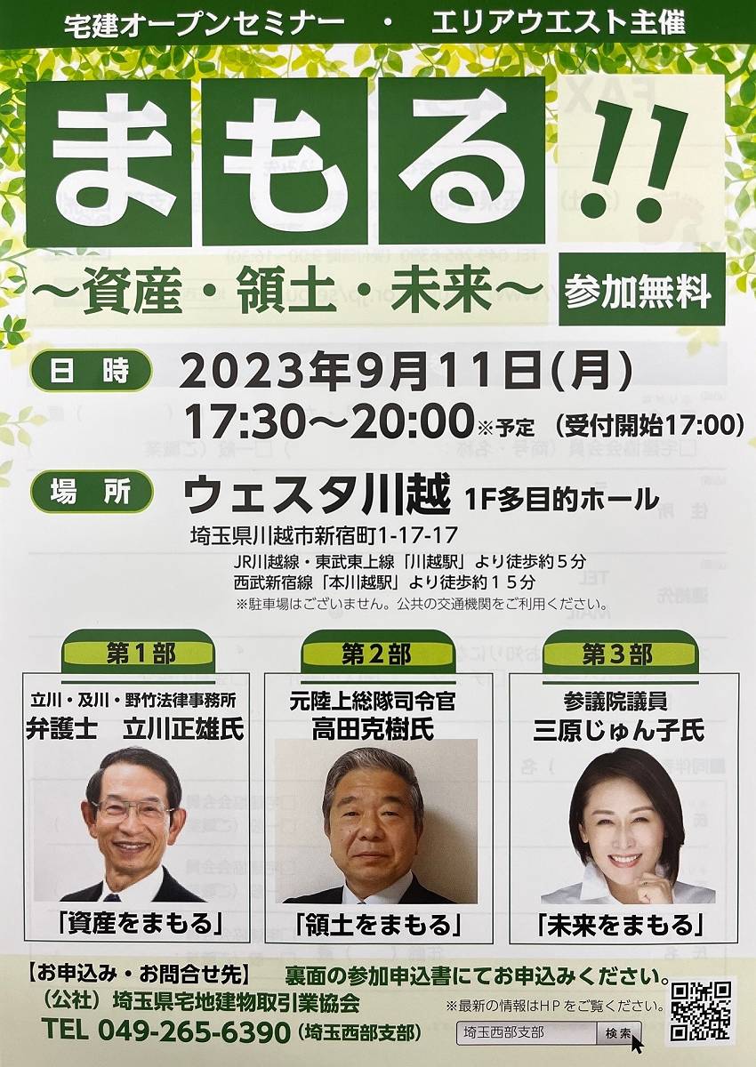 宅建オープンセミナー「まもる!! ~資産・領土・未来~」を開催!(9/11・川越・無料)