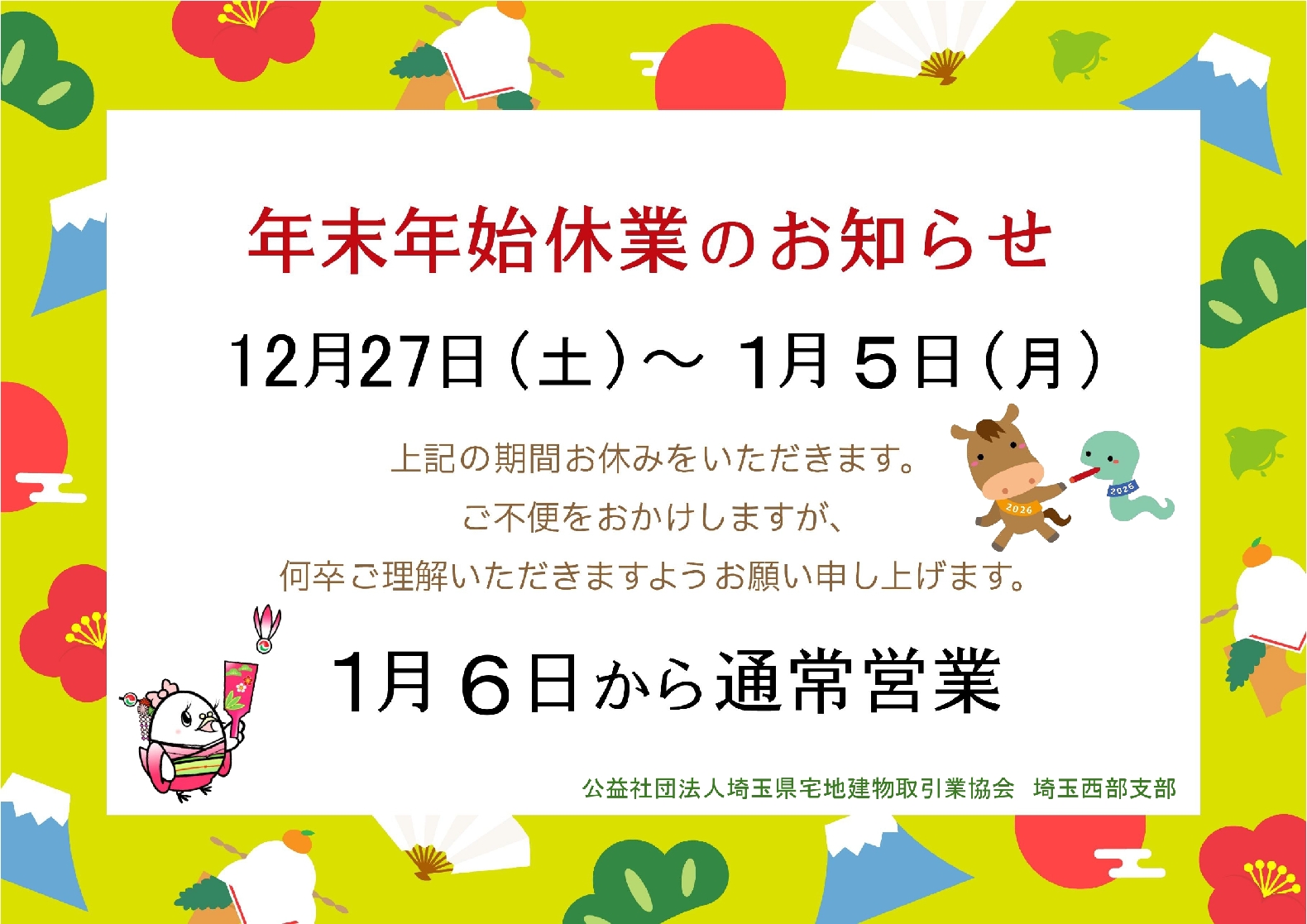 令和7年12月27日(土)~令和8年1月5日(月)まで支部事務局を休業とさせていただきます。