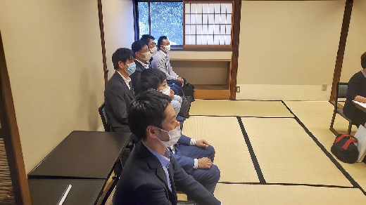 今回の研修会場は厳かな庭に面した広い部屋です。