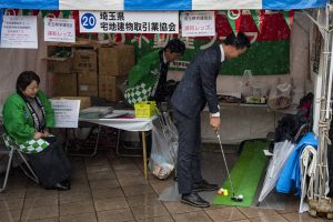 チラシを配布し、「不動産のことならハトマーク」という方々が