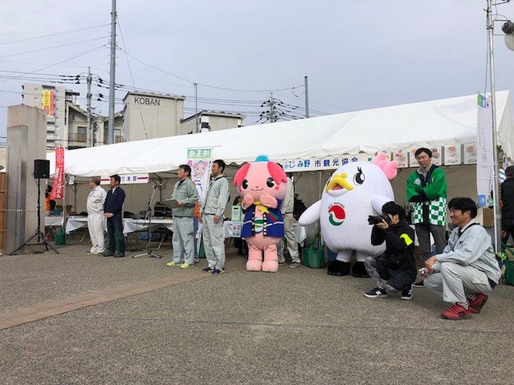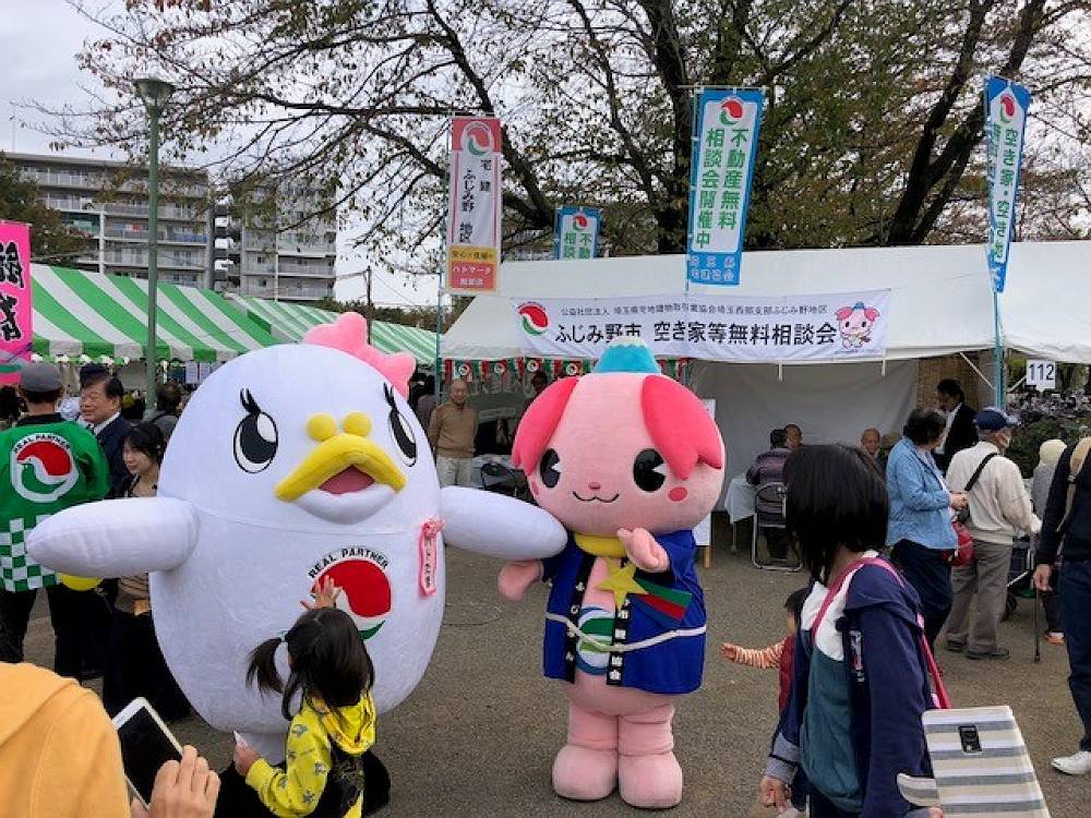 ふじみ野市のマスコットキャラクター「ふじみん」とともに紹介され