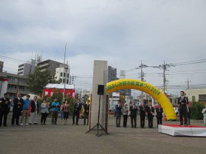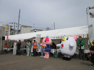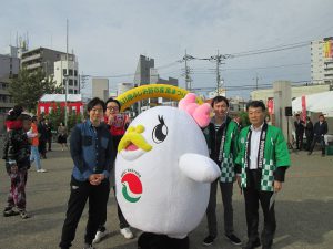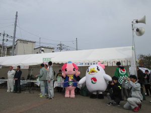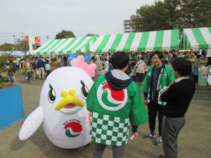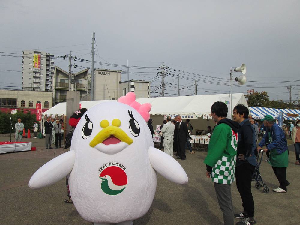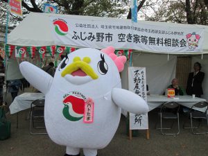 会場には、宅建協会のマスコットキャラクター「ハトたま」が来場し、