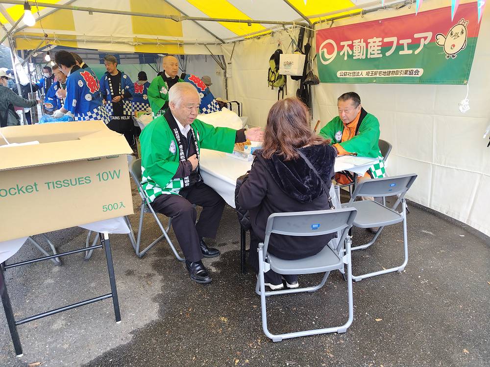 回を重ねること第40回となった鶴ヶ島産業まつりに、今年も鶴ヶ島市商工会宅建部会、鶴ヶ島宅建会と合同で、不動産フェアと無料相談会、恒例となった気仙沼直送の新鮮なさんま(11月7日水揚げ)を炭火で焼いた、焼きさんま販売を出展しました。