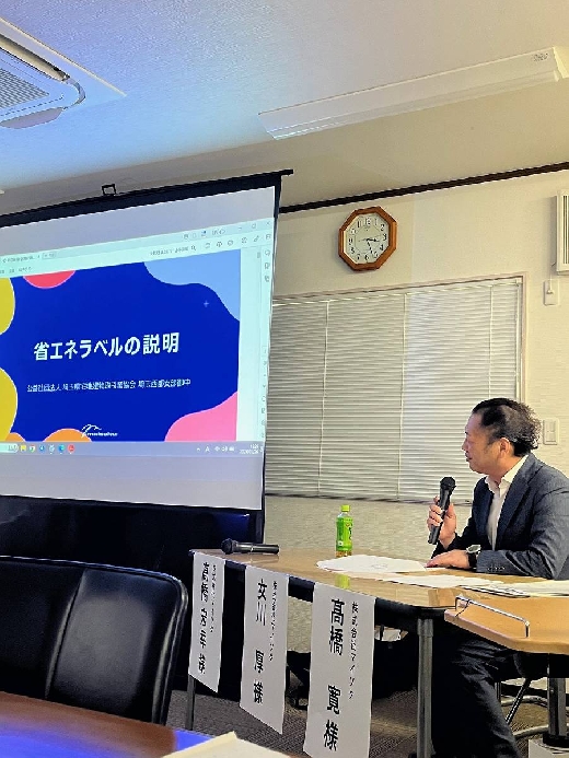 最初に、省エネラベルについての講演がありました。省エネラベルの見方や今後どういった物件が対象となるのかをお話頂き、ラベルがあるとどのようなメリットがあるのかを学ぶことが出来ました。